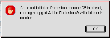 could not initialize photoshop because g5 is already running a copy of adobe photoshop with this serial number.