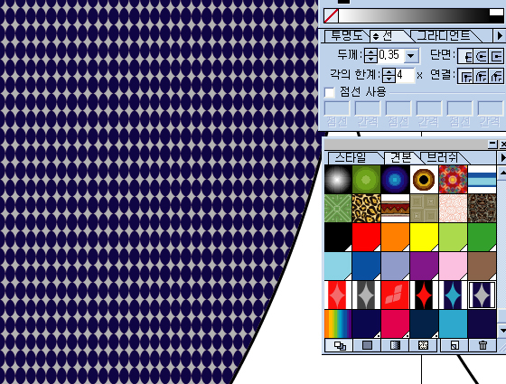 첨부화일에서 보는 것 같이 패스로 만들어진 면에 패턴으로 들어가 있는데,